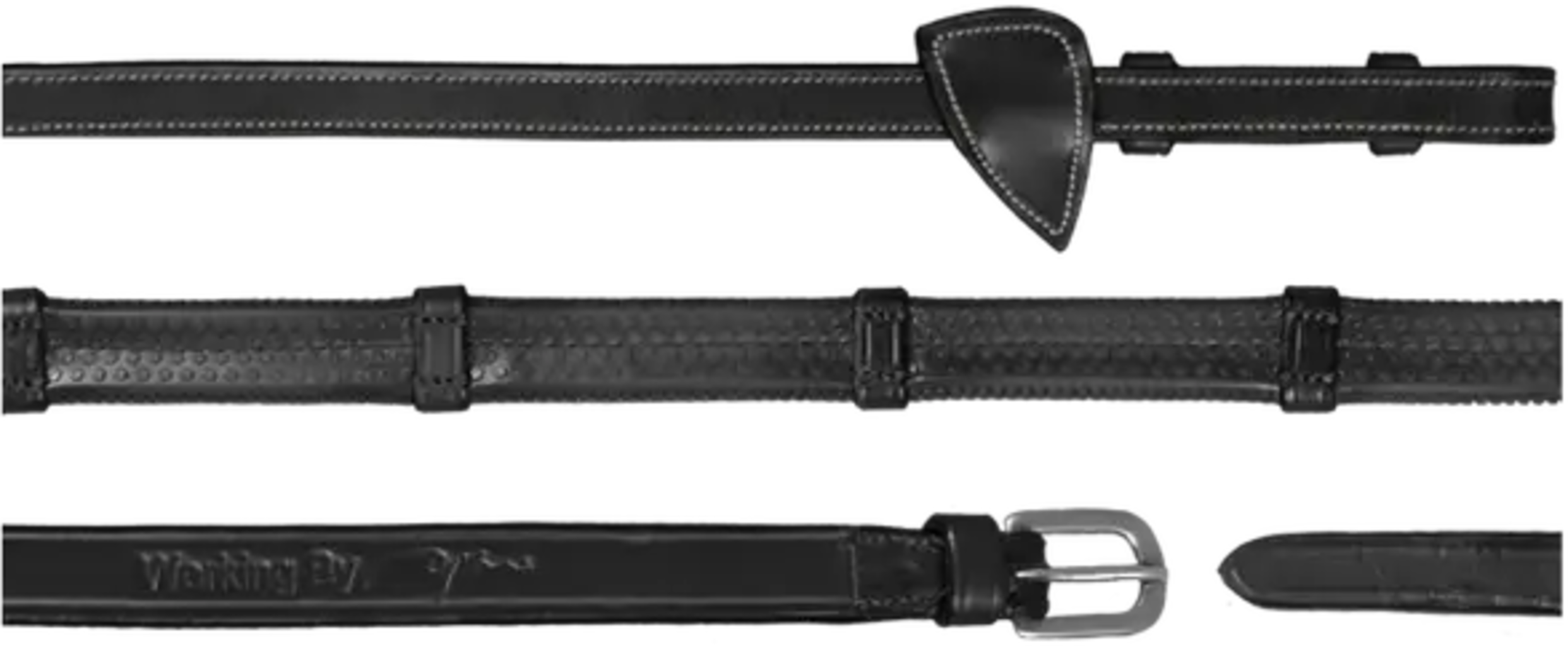 Ez a robusztus szár bütykös gumiból készült, ami miatt különösen jól és biztosan fekszik a kézben, és optimális kezelhetőséget biztosít. A középső rész és a végek, valamint a formás kialakítású martingál stopok strapabíró, nemes bőrből készültek. Az elegáns, világos varrással szegett szár esztétikailag is figyelemre méltó darab.