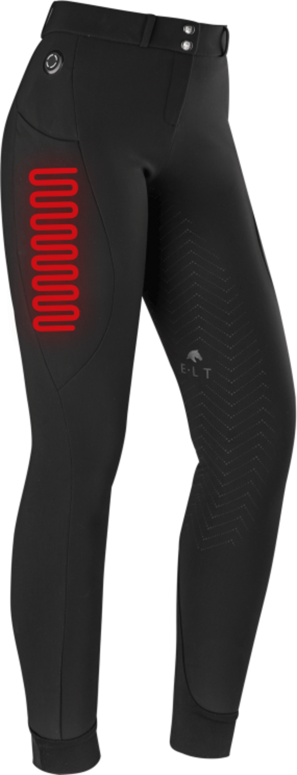 Az E·L·T Comfort Heat fűthető lovaglónadrág gondoskodik arról, hogy a jeges napokon is melegen, rugalmasan és kényelmesen maradjon a nyeregben. A 3 beépített fűtőelemnek köszönhetően – kettő a comboknál, egy pedig a deréktájon – jótékony és egyenletes meleget élvezhet pontosan ott, ahol lovaglás közben a legnagyobb szüksége van rá. Az oldalt elhelyezett gomb segítségével egyénileg szabályozható a hőmérséklet, a színes kijelzőn pedig azonnal láthatja, hogy melyik fokozat aktív. A rugalmas anyag, a formázott magas derékrész és a teljes szilikonos ülőfelület mozgásszabadságot, tartást és optimális illeszkedést biztosít. Praktikus: Powerbankot egyszerűen csatlakoztathatja a jobb oldali zsebben található beépített USB-csatlakozón keresztül. Tökéletes edzéshez, istállómunkához és hosszú tereplovaglásokhoz a hideg évszakban.