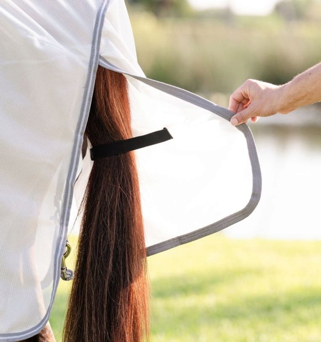 Ez a Horseware Ireland által gyártott strapabíró és légáteresztő légytakaró megbízhatóan védi póniját a rovaroktól és az UV-sugárzástól. A sűrű szövésű anyag napfényvisszaverő tulajdonsága 65%-os UV-védelmet biztosít.