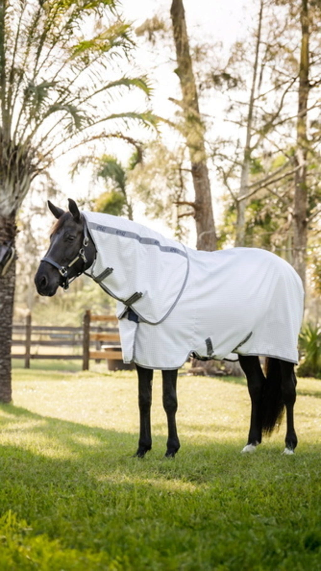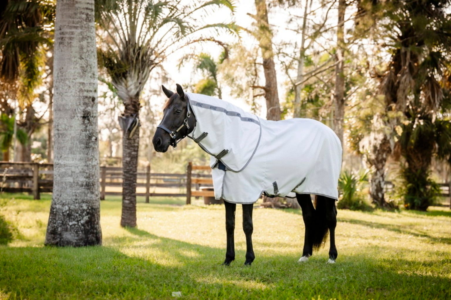 A Horseware Ireland könnyű Amigo Summer Sheet Plus nyári takarója távol tartja a legyeket és az egyéb zavaró rovarokat, miközben légáteresztő képességével a forró napokon is maximális kényelmet biztosít. A poliészter és a pamut kombinációja nagyszerű érzetet nyújt a bőrnek.