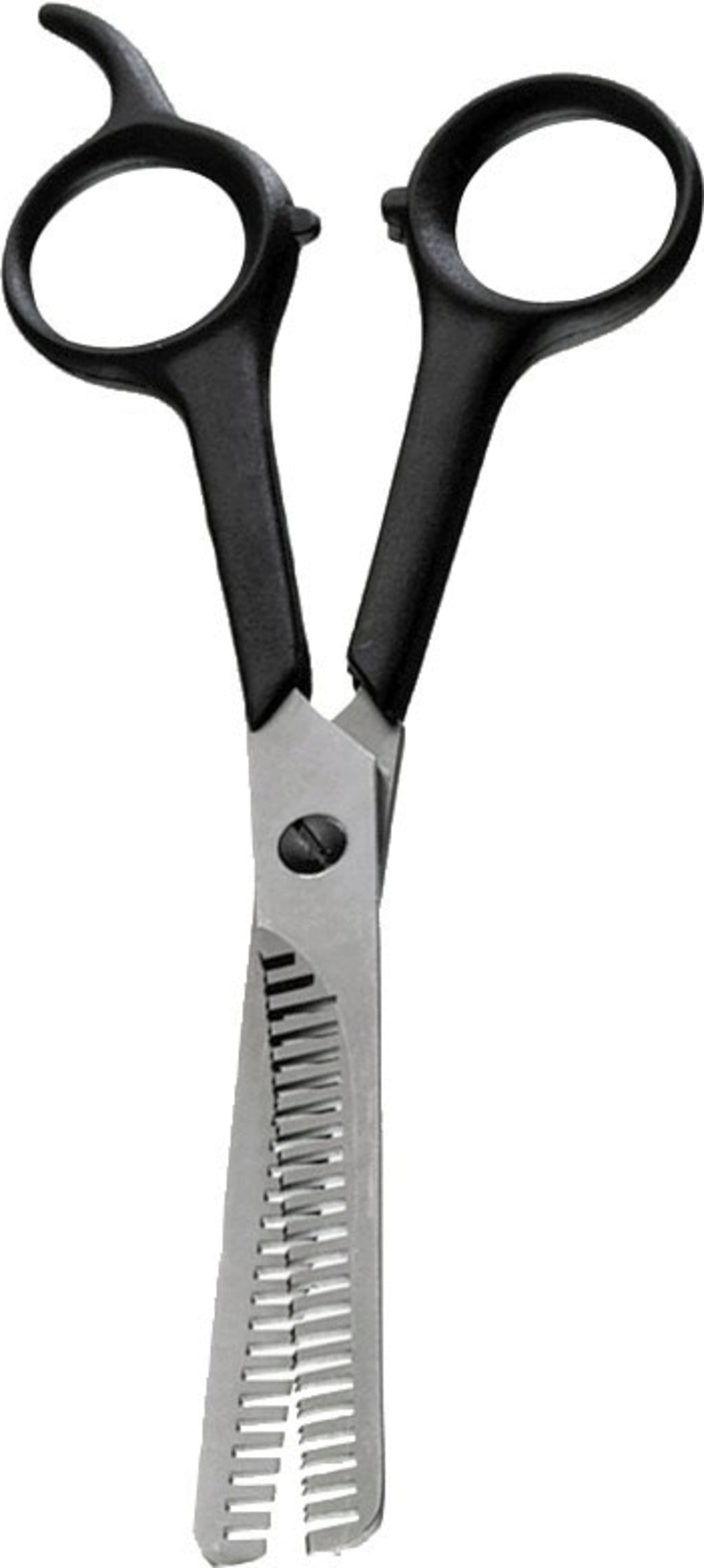 Szőrritkító olló sűrű szőrzet ritkításához és vágásához. Kiváló minőségű kidolgozás krómozott anyagból és praktikus ujjtartóval.