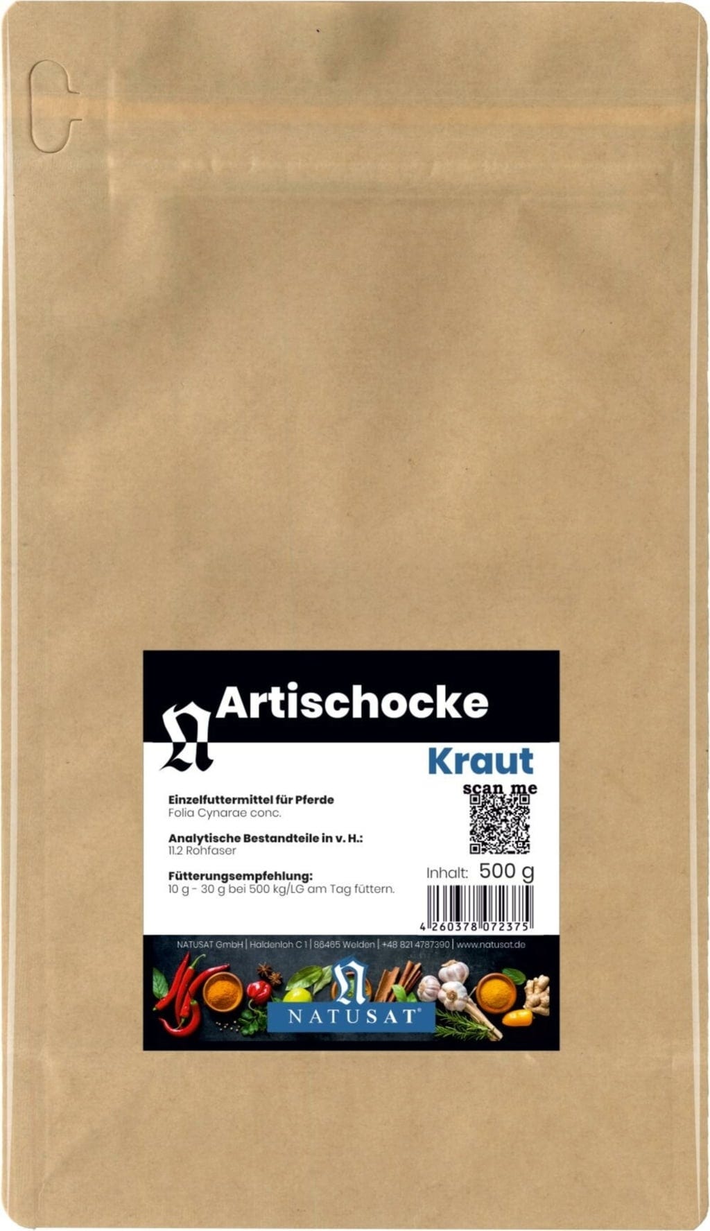 Ez az egykomponensű takarmány vágott articsóka levelekből (Folia Cynarae) áll, és lovak etetésére szolgál. Az articsóka növény leveleit, amely az Asteraceae családba tartozik, használják fel.