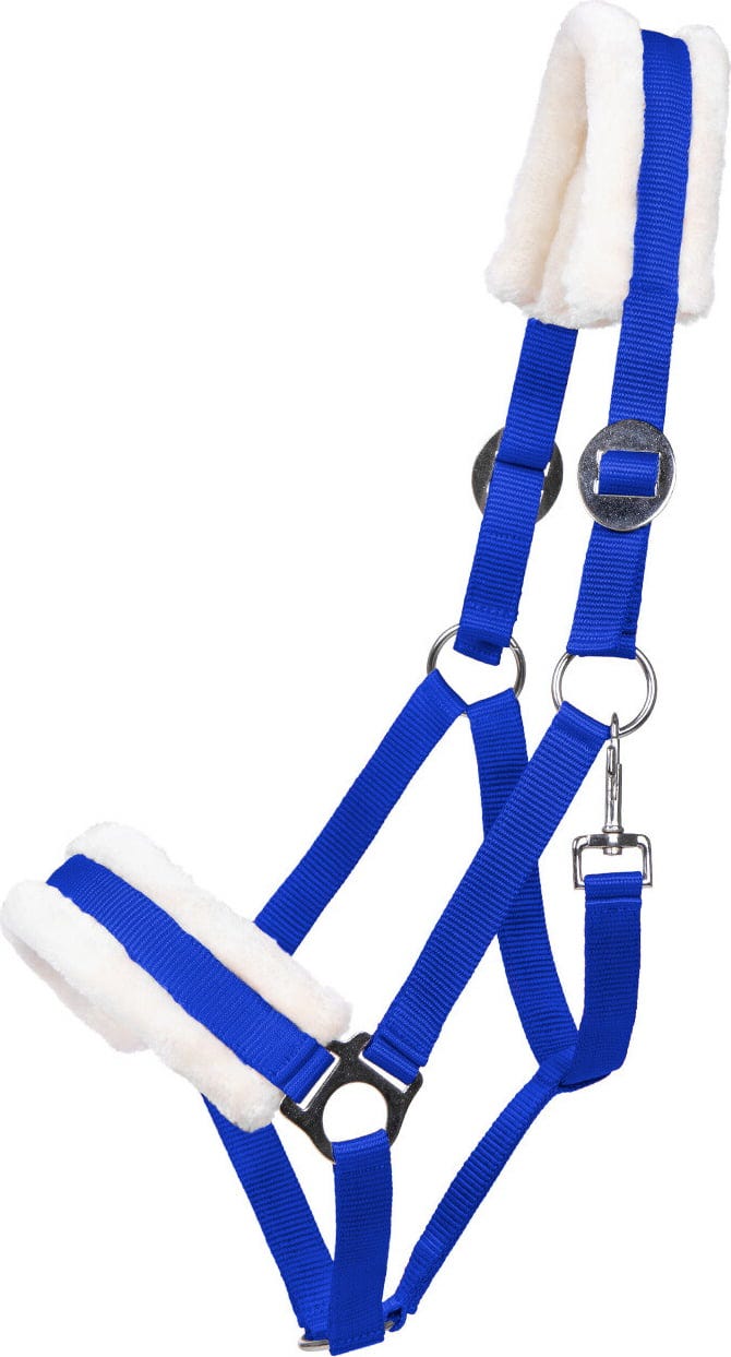 - Extra kényelem – a fejrész és az orrszíj puha műszőrmével párnázott. Ez megakadályozza a kidörzsölődést, és különösen kényelmessé teszi a kötőféket – ideális érzékeny lovak számára.