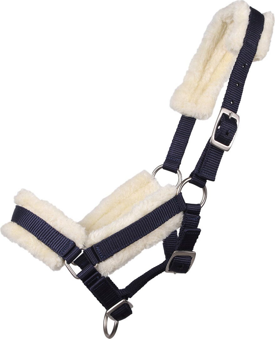QHP Csikó kötőfék szőrmével, sötétkék, Shetty