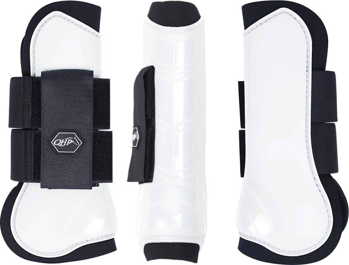 Ez a két darab anatómiailag formázott, kemény külső borítású ínvédő ragyogó fehér színben ideális a ló lábainak védelmére edzés és versenyek során.