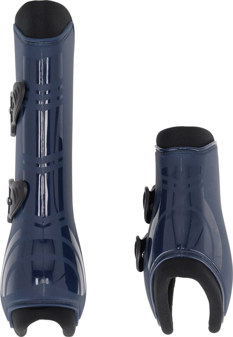 Az anatómiailag formázott protektorok robusztus, kemény műanyag héjból (poliuretán) állnak, matt felülettel, amelyet fényes csíkok hangsúlyoznak a sportos megjelenés érdekében. A belseje puha neoprénnel bélelt - a maximális kényelem érdekében. Az ínvédők kivételesen könnyűek, és a rugalmas gyors kioldós rögzítéseknek köszönhetően másodpercek alatt könnyen felhelyezhetők és rögzíthetők!