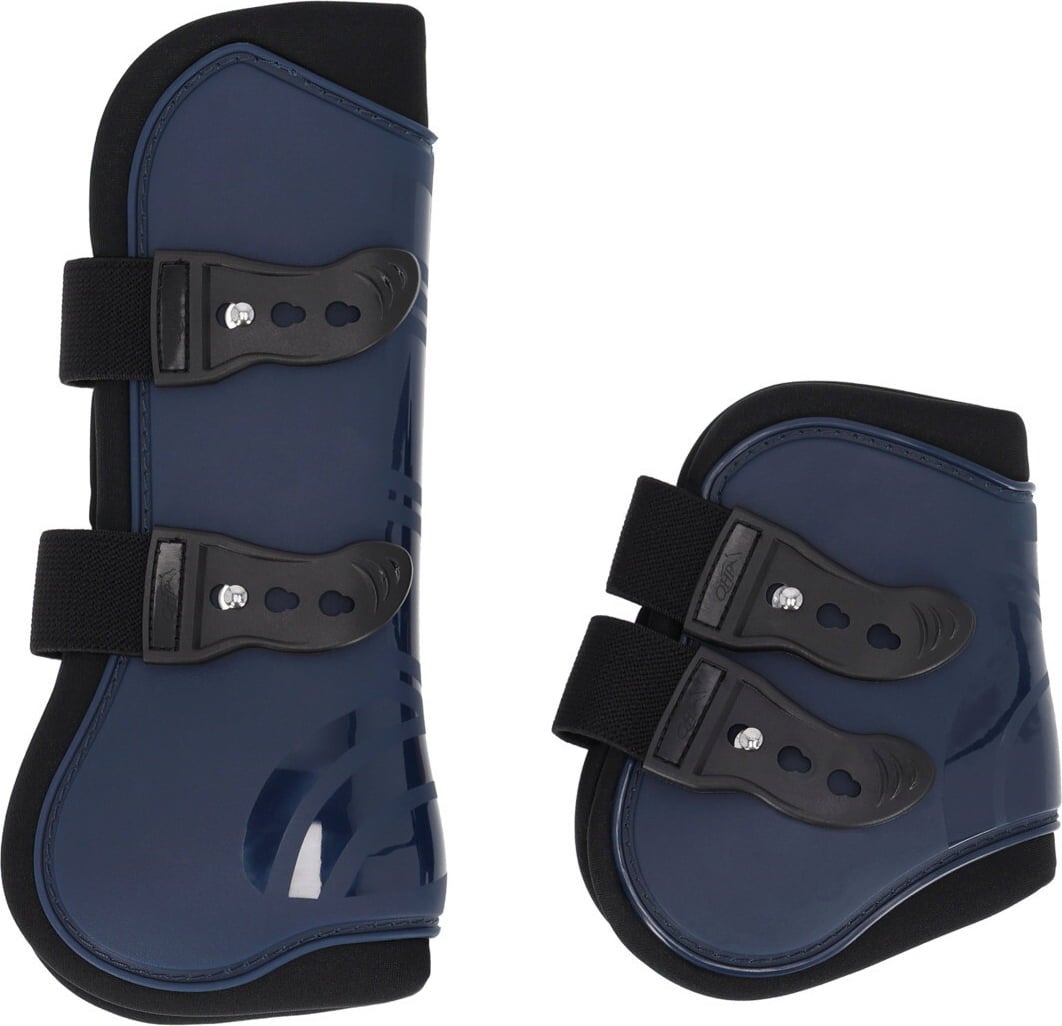 A komplett QHP ínvédő szett használatával megbízhatóan védheti lova érzékeny inait, mellső és hátsó lábait az ütésektől és a kidörzsölődéstől. A készlet két ínvédőt tartalmaz az első lábakra és két bokavédőt a hátsó lábakra, így teljes körű védelmet nyújt a tréning során.