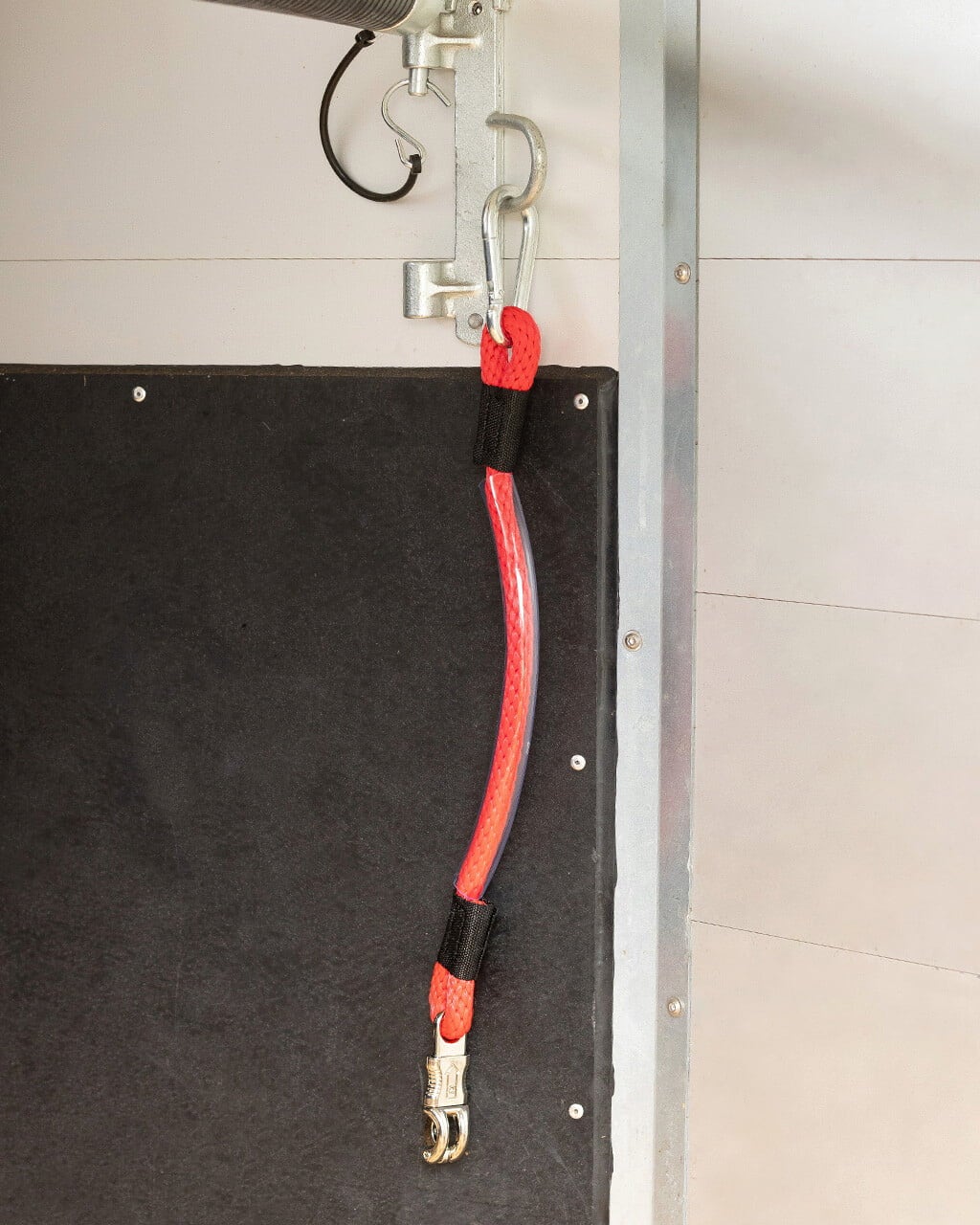 A QHP Kikötő lószállítóhoz biztosítja a ló megbízható rögzítését az utánfutón. A karabiner és a pánikkarabiner jól megtervezett kombinációja lehetővé teszi a könnyű kezelést és a gyors rögzítést.