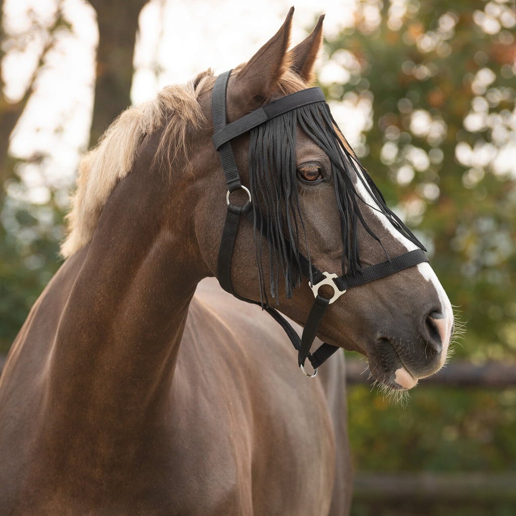 A QHP légysallang hatékony védelmet nyújt lovának a fej körüli bosszantó rovarok ellen – légyirtó spray nélkül. A könnyű tépőzáras rögzítésnek köszönhetően gyorsan és biztonságosan rögzíthető a kötőfékhez. A kontrasztos homlokpánt nemcsak biztonságos illeszkedést kínál, hanem stílusos megjelenést is kölcsönöz. Ideális terepen, vagy legelőn történő lovagláshoz, illetve a karámban töltött pihentető órákhoz.