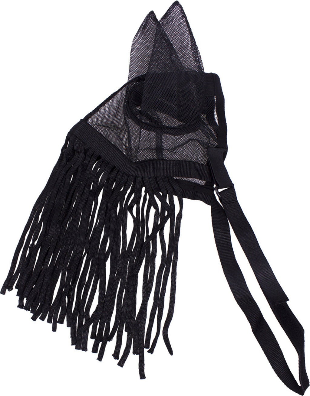 A tépőzáras, rugalmas torokszíj biztonságos illeszkedést kínál, még akkor is, ha a ló nem visel kötőféket. A rojtok 100% terilénből készültek – tartósak, könnyen kezelhetők, és ideálisak a legelőn vagy karámban való mindennapi használatra. A fülek feletti könnyű hálós anyag megbízható védelmet nyújt anélkül, hogy irritálná vagy elnehezítené a lovat.