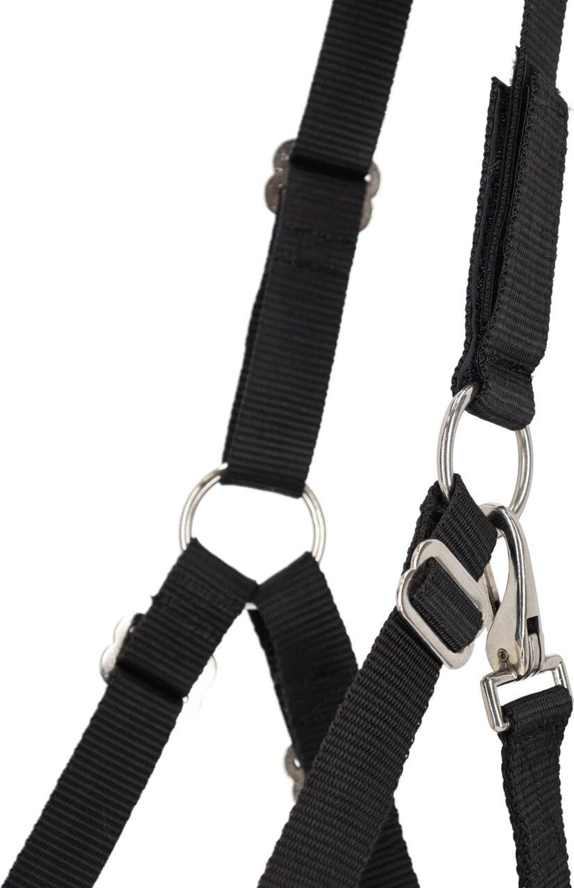 Különösen átgondolt az orr-részen található extra kivágás, amely szabad légáramlást biztosít és minimalizálja a maszk alatti hőfelhalmozódást. A tarkó- és torokszíjak sokoldalú állítási lehetőségeinek köszönhetően a maszk precízen a ló fejéhez igazítható, és hosszabb legeltetési idő alatt is stabilan illeszkedik.