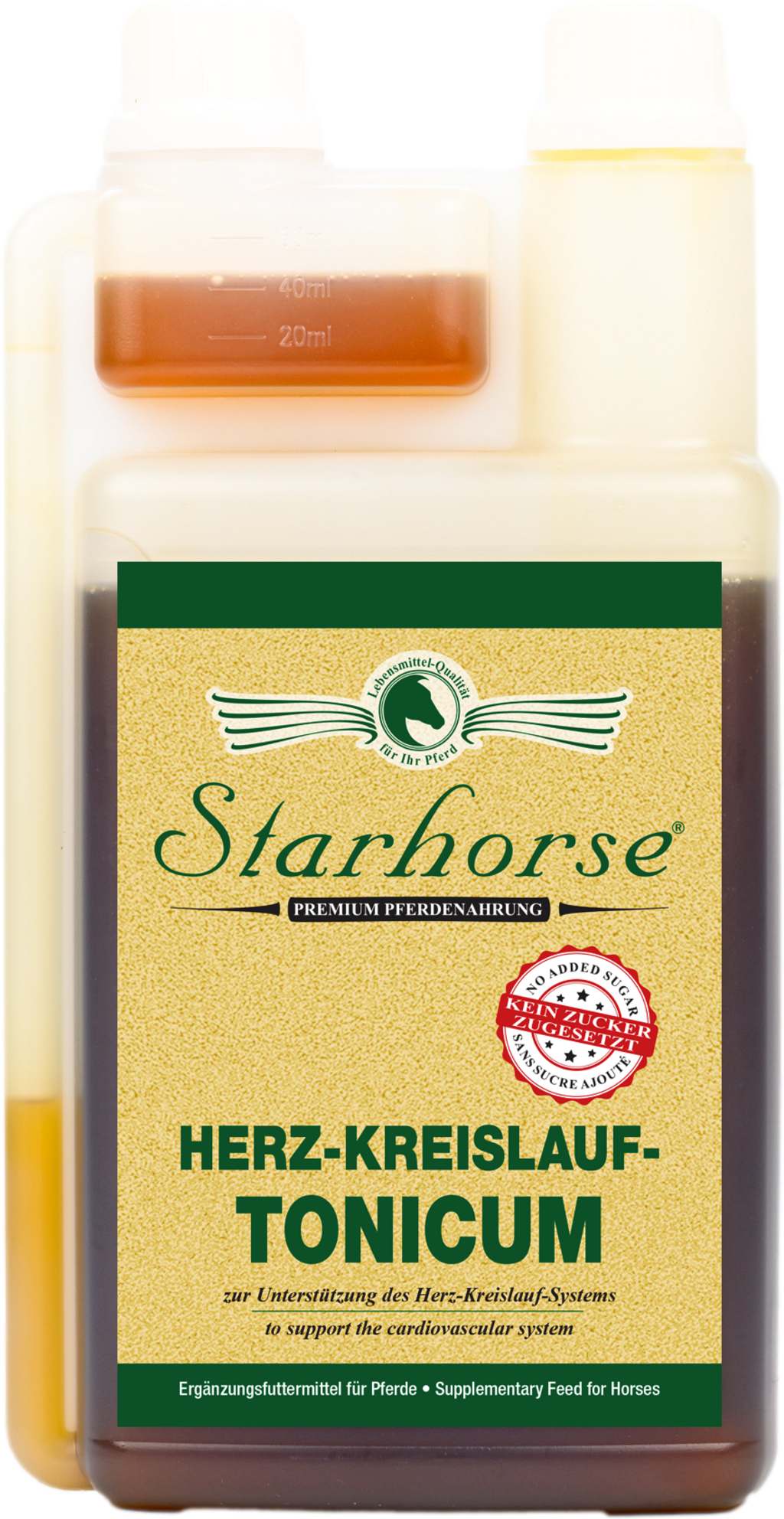 A Starhorse szív- és érrendszer tonik egy kiváló minőségű takarmánykiegészítő, amely optimálisan támogathatja kedvencét stresszes helyzetekben. A gondosan válogatott összetevők, köztük az anyósvirág, a mate levél, a galagonya kivonat és az omega-3 zsírsavak szinergiában működnek együtt, hogy nagyszerű hatást fejtsenek ki. A folyékony készítmény különösen előnyös az idősebb és a speciális igényű lovak számára. Az értékes tonik hozzáadott cukortól mentes, és ideális kiegészítő a napi etetéshez, amelyet a praktikus adagolókamra megkönnyít.