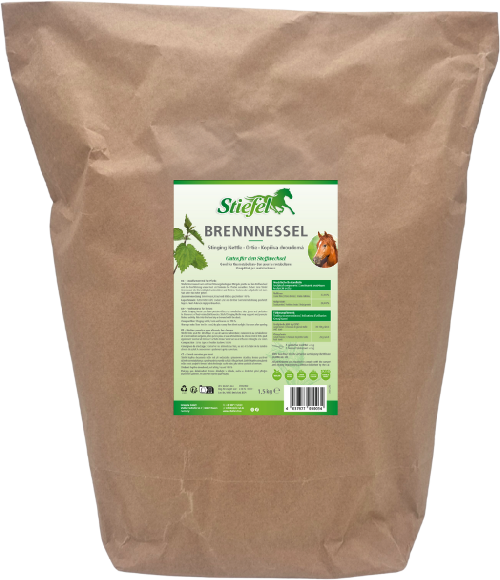 A Stiefel Csalán pozitív hatással van a ló bőrére és ízületeire, valamint a vérkeringésre. Ráadásul a csalán magas káliumtartalma miatt támogatja a veseműködést és vizelethajtó hatású is lehet. Mindezen pozitív tulajdonsága miatt a csalán természetes ásványi takarmányként adható.