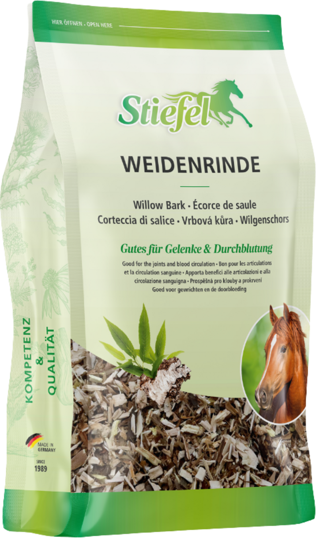 A fűzfakéreg fő hatóanyaga a szalicin. A fűzfa kérgének állítólag gyulladáscsökkentő és fájdalomcsillapító hatása van. Emellett reumás panaszokra is pozitív hatással lehet. A Stiefel Fűzfakéreg természetes szalicilsavat tartalmaz, amely segíthet a lovaknak ízületi és anyagcsere-problémák esetén. A szervezetben fellépő gyulladások esetén a ló öngyógyító ereje a Stiefel Fűzfakéreg adásával támogatható és aktiválható.