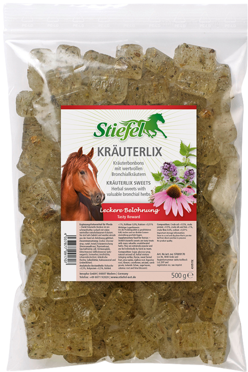 A Stiefel Kräuterlix Bonbons hörgő-gyógynövények egészséges keveréke, jutalomként tökéletes finom csemege. A Stiefel Kräuterlix Bonbons közvetlenül a kézből etethető.