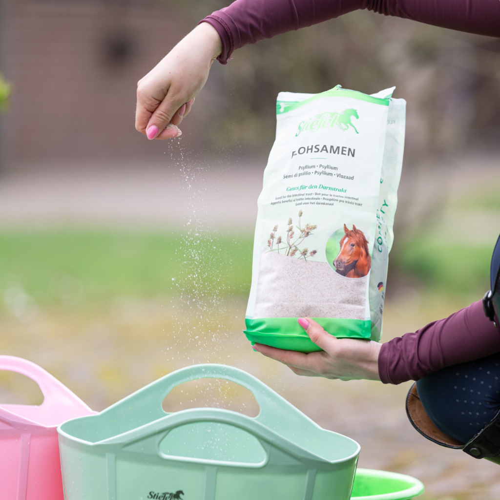MEGJEGYZÉS: Az útifűmag héjat elegendő vízzel mindig teljesen meg kell puhítani, különben székrekedéses kólika léphet fel. Ezenkívül a lónak mindig korlátlan hozzáférést kell biztosítani a vízhez.